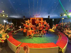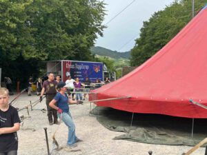 Der sechste und letzte Tag des Zirkusprojekts war ein Fest für alle Sinne und ein würdiger Rahmen für das 55-jährige Schuljubiläum der Bachschloss-Schule. Bei strahlendem Sonnenschein wurde das große Zirkuszelt sogar noch dreimal zur Bühne für mutige, kreative und hochkonzentrierte Kinder, die mit ihren Darbietungen ein begeistertes Publikum verzauberten.