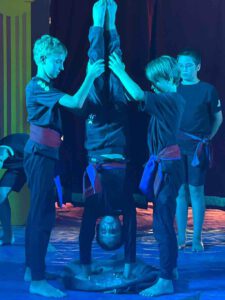 Die Aufführung selbst bot spektakuläre Höhepunkte: Fakire zeigten beeindruckende Darbietungen auf dem Nagelbrett und Scherben, während Diabolos bis in den Zelthimmel flogen, Kinder türmten sich nicht nur wagemutig aufeinander, sondern auch auf Leitern und auf BMX-Rädern, hielten Balance und vertrauten ihren Mitschülern. Die Mischung aus Artistik, Fantasie und Zauberei rührten viele Eltern.